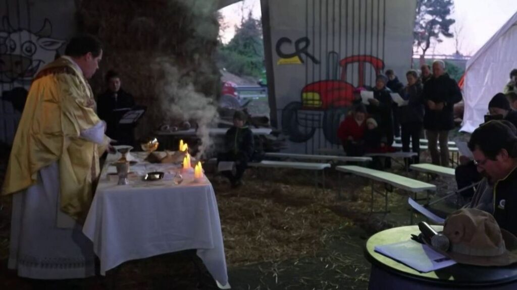 Late in the afternoon on December 25, a mass was held under a bridge on the A63 motorway. Dozens of people were present, farmers, but also residents who came to support them. “It’s totally improbable, but that’s what’s beautiful. That’s what’s beautiful, precisely, is that people still have a little bit, I’m going to come back to the word, of humanity.” confides a local resident. A farmer adds: “It warms my heart. It’s the first time we’ve spent Christmas here on the A63.”