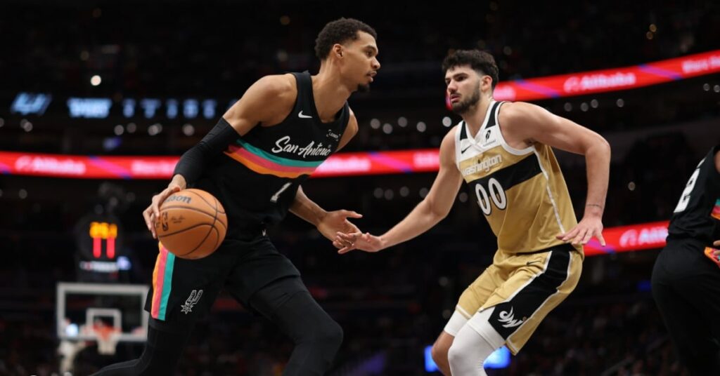 Washington held on for a quarter, before completely exploding (21-43 in the second quarter) and letting San Antonio slip to victory. De’Aaron Fox finished with 27 points, while Victor Wembanyama, back on the bench to start the match, quietly achieved a double-double in 21’30: 14 points and 12 rebounds, playing only 40 seconds in the last quarter. He also brought his streak of games to at least one against to 101. On Tuesday, the Spurs will host OKC for a summit match!